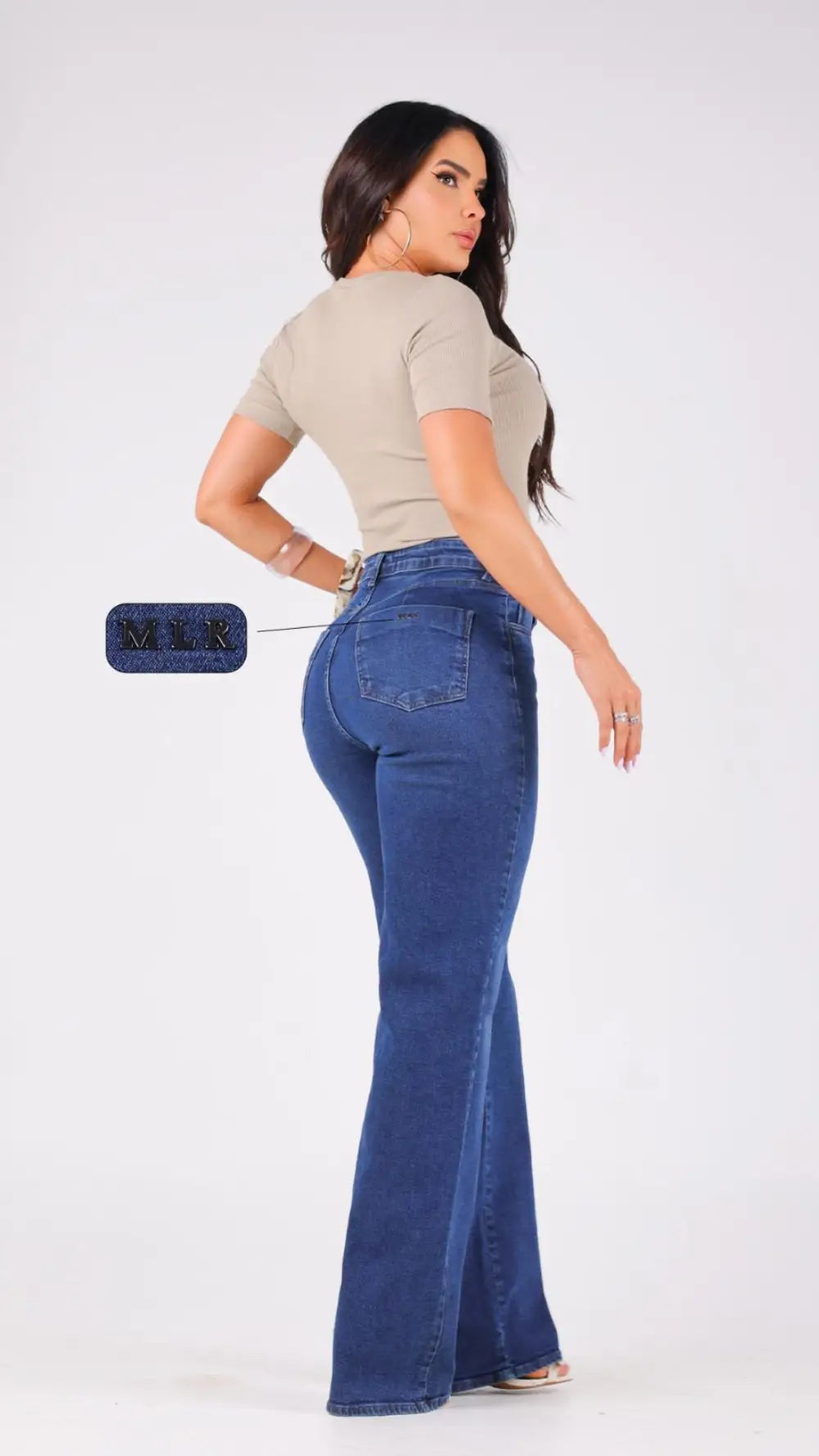 Modelagem reta com cintura alta que alonga a silhueta e valoriza o corpo.