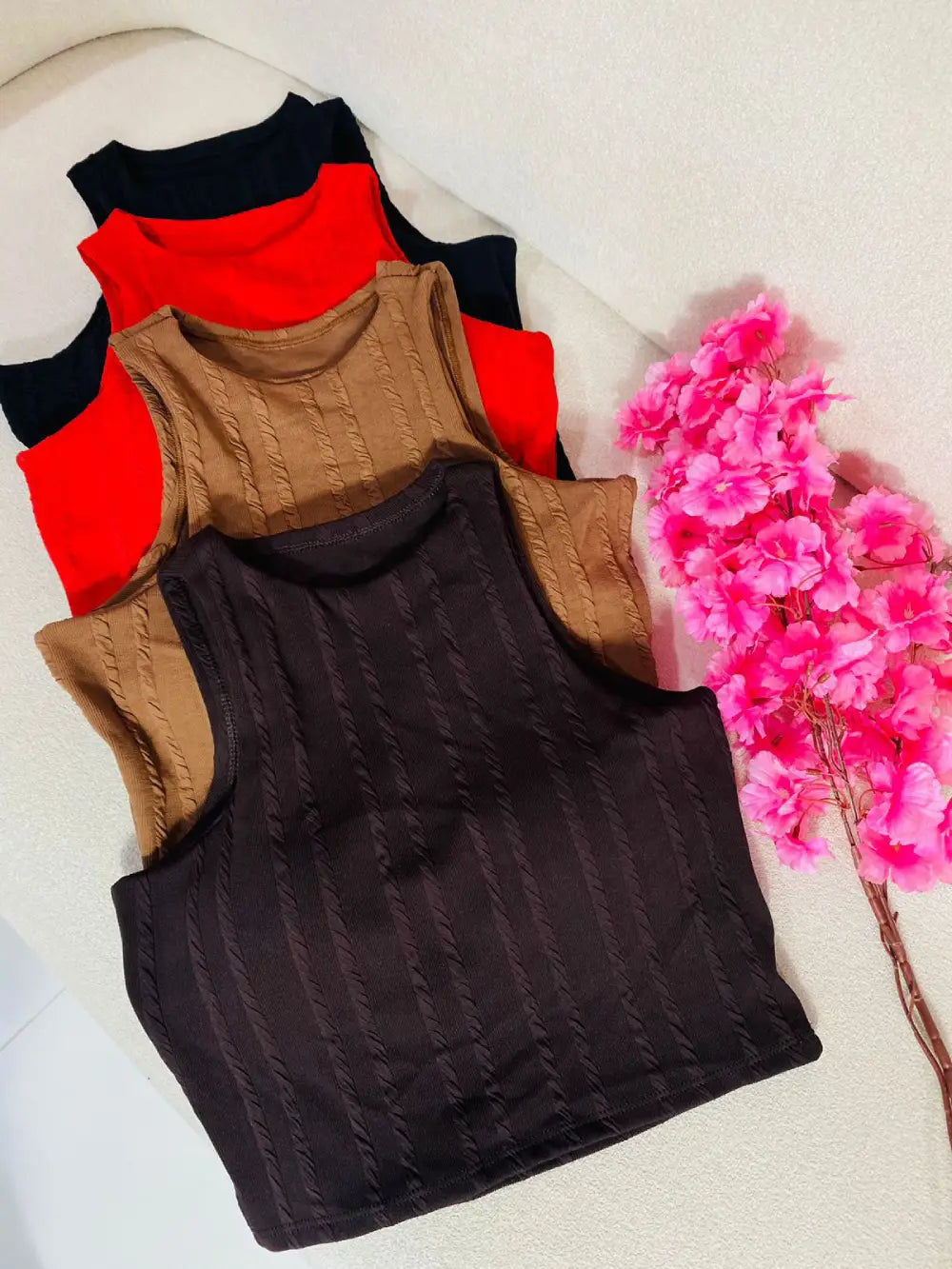 Cropped canelado sem mangas, com modelagem ajustada ao corpo. Tecido macio e confortável, ideal para o dia a dia. Combina com diversos estilos e composições.