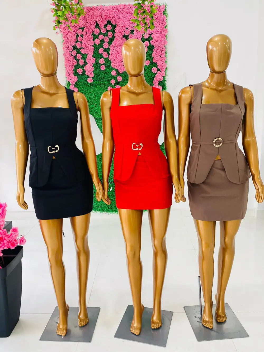 Conjunto feminino em alfaiataria com colete e short.