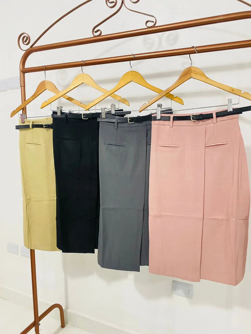 Saia social midi com modelagem reta, bolsos embutidos e cinto para melhor ajuste. Elegante e versátil, é perfeita para o dia a dia ou ocasiões formais. Disponível em cores modernas que combinam com diversos looks.