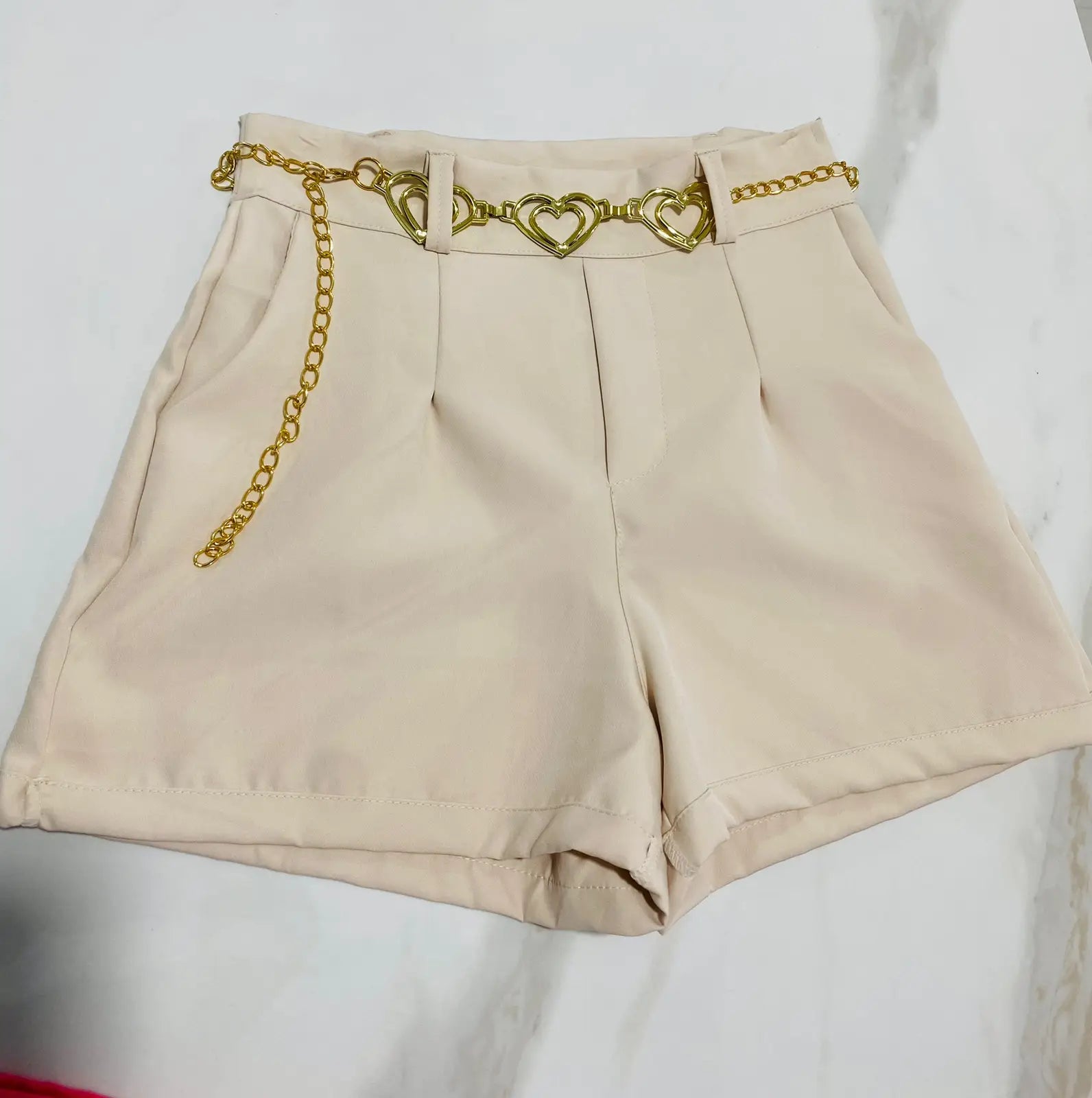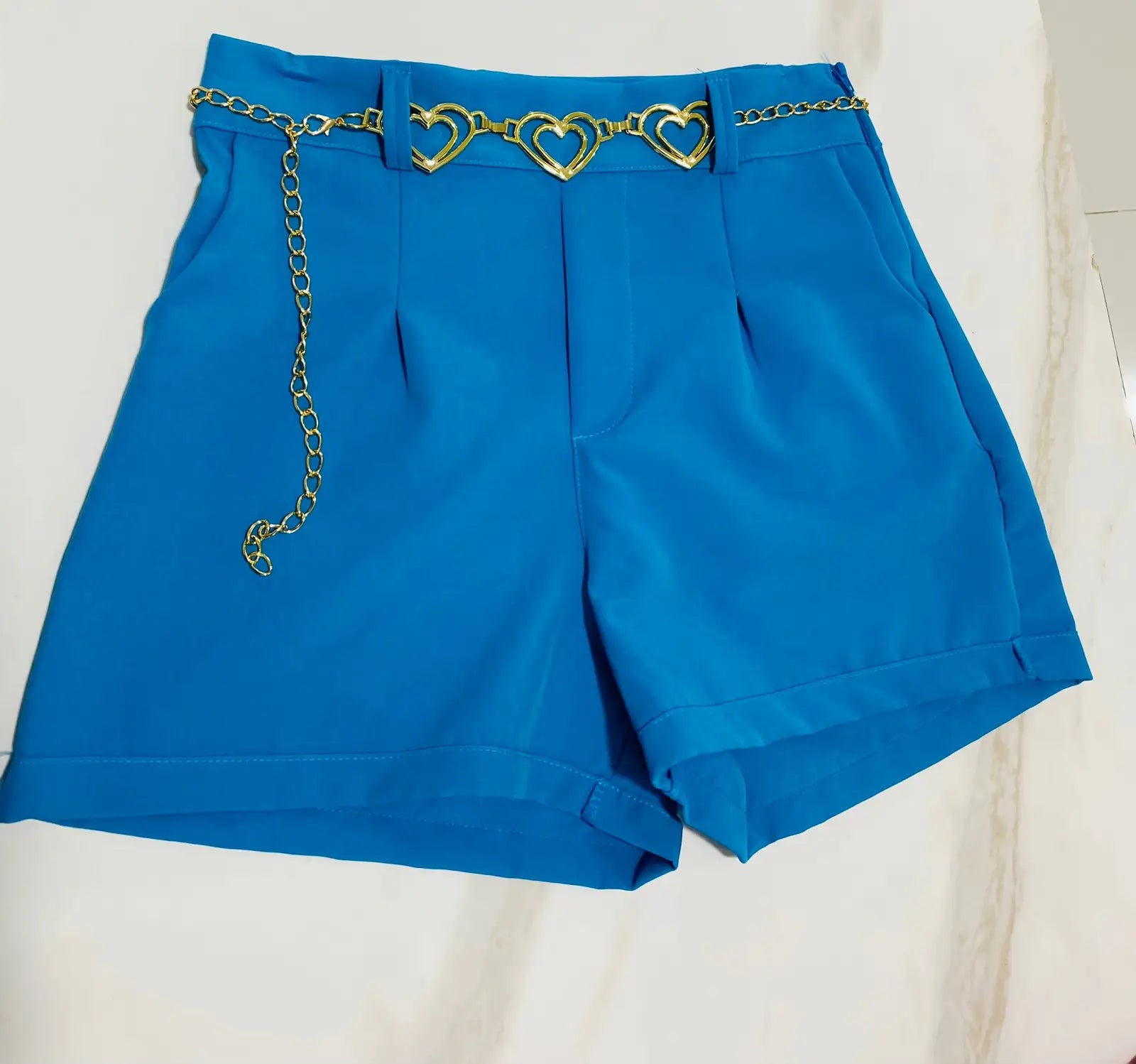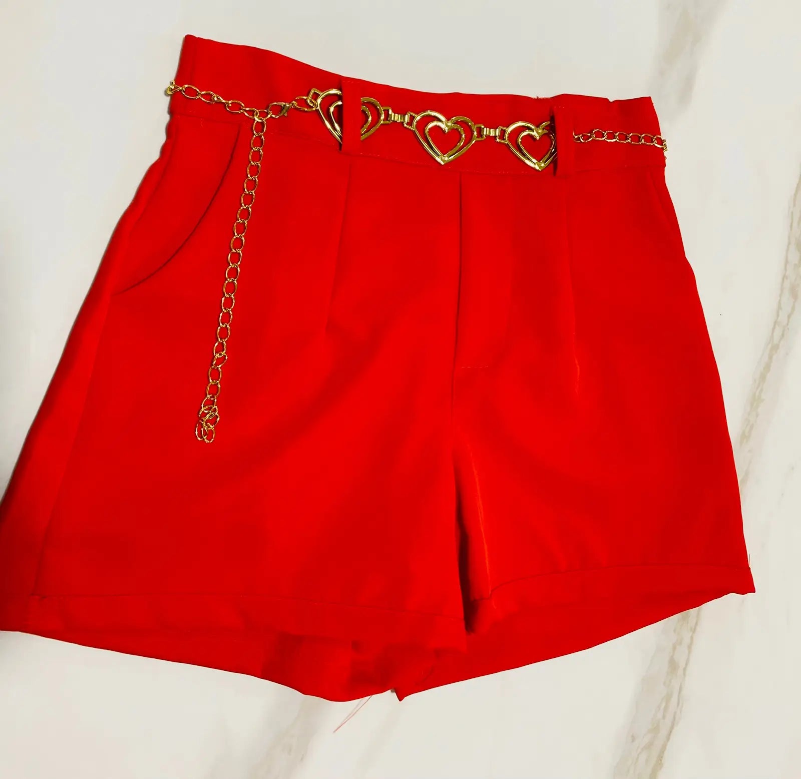 Short alfaiataria com estampa de corações, toque delicado e caimento impecável. Acompanha cinto com cinco la dourada para um visual mais sofisticado. Perfeito para composições leves e elegantes. Disponível no Atacadão Outlet Castanhal. Aproveite o preço de atacado a partir de 6 peças e economize mais comprando direto da moda.
