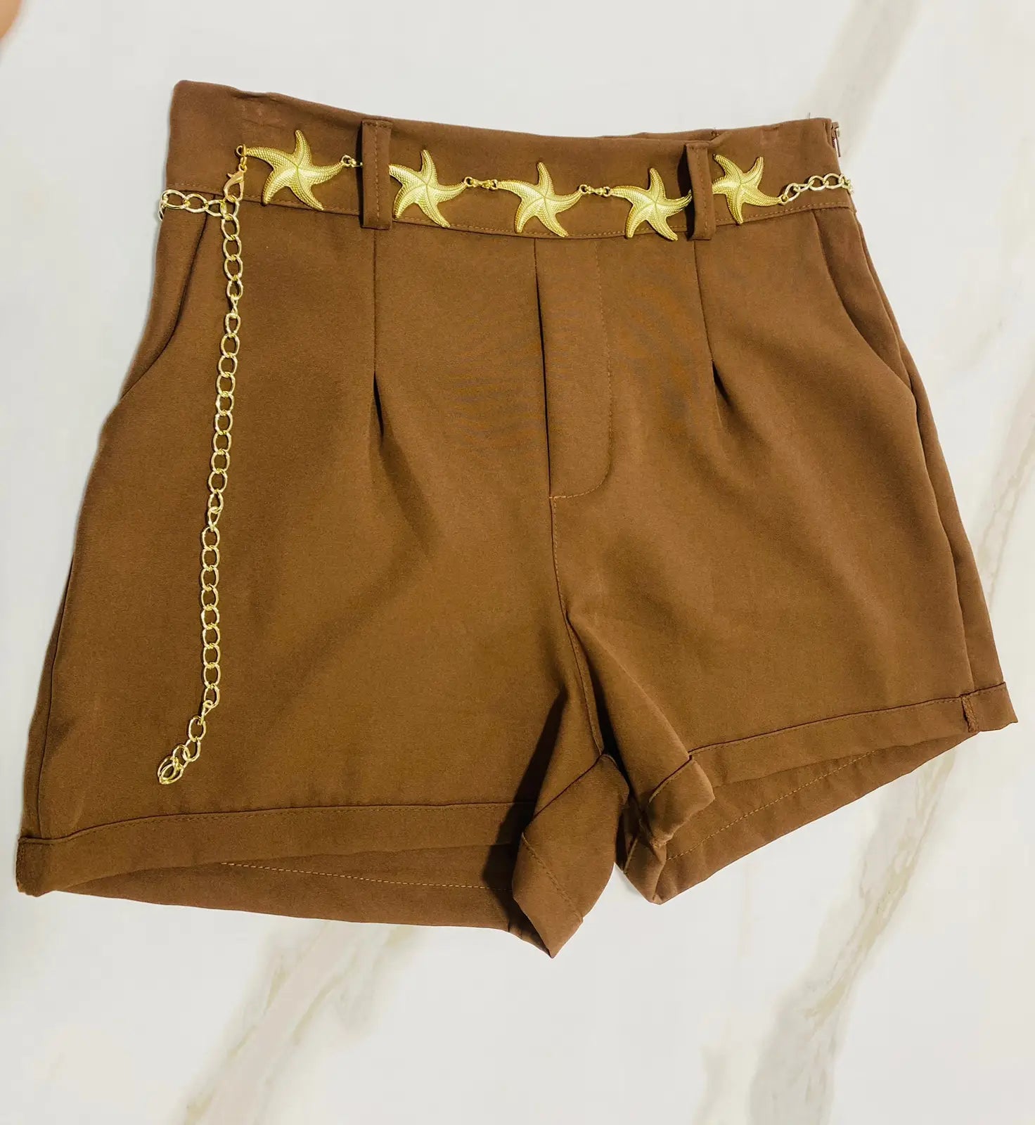 Short social alfaiataria com acabamento impecável, modelagem estruturada e cinto com fivela dourada em formato de flor. Disponível em cores sofisticadas para compor looks elegantes e versáteis. Ideal para quem busca conforto com estilo.