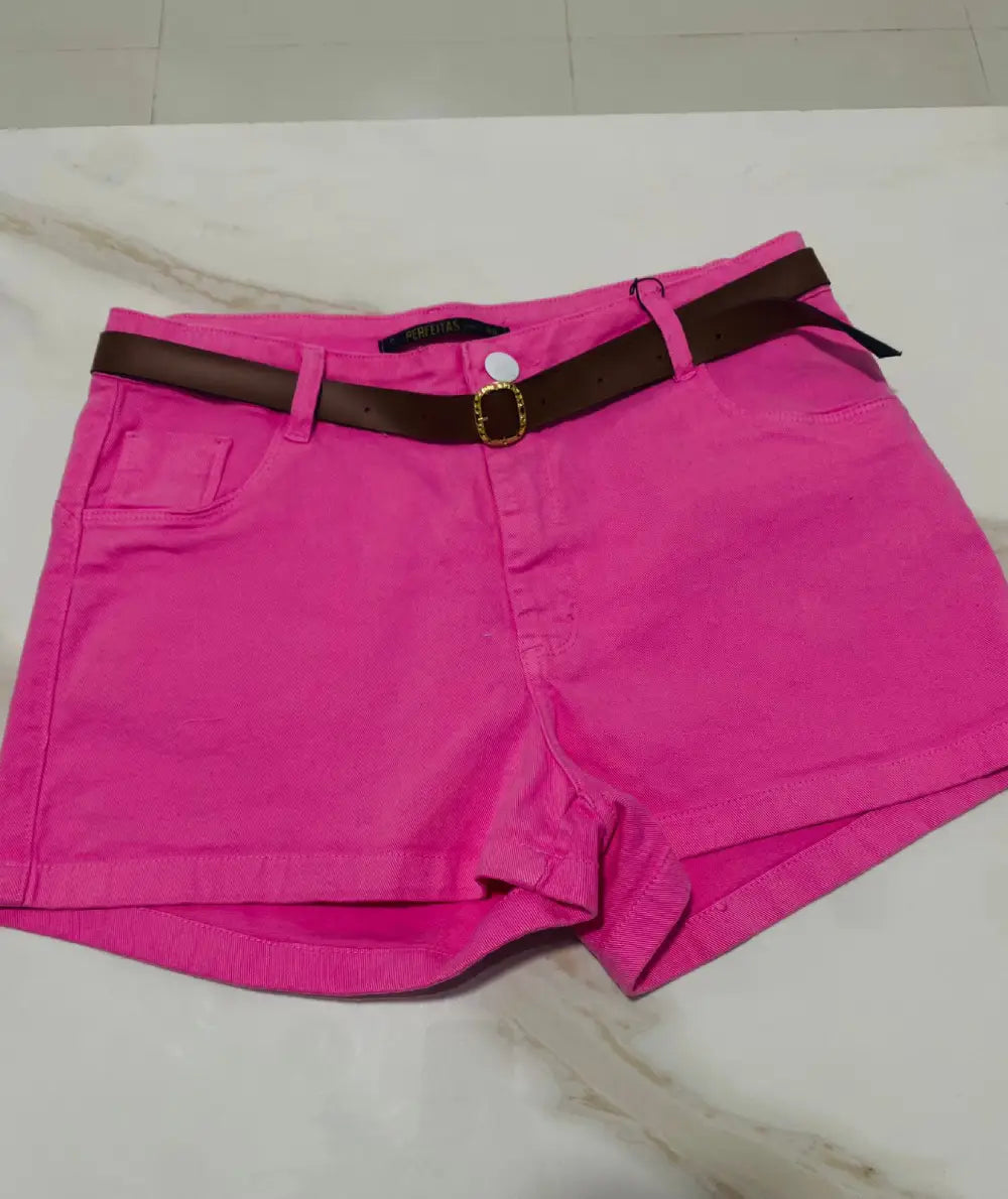 Short jeans feminino da marca Perfeitas Jeans, modelagem moderna e confortável. Confeccionado em denim azul, possui bolsos funcionais e fechamento em zíper e botão. Peça versátil, ideal para compor looks casuais e despojados.